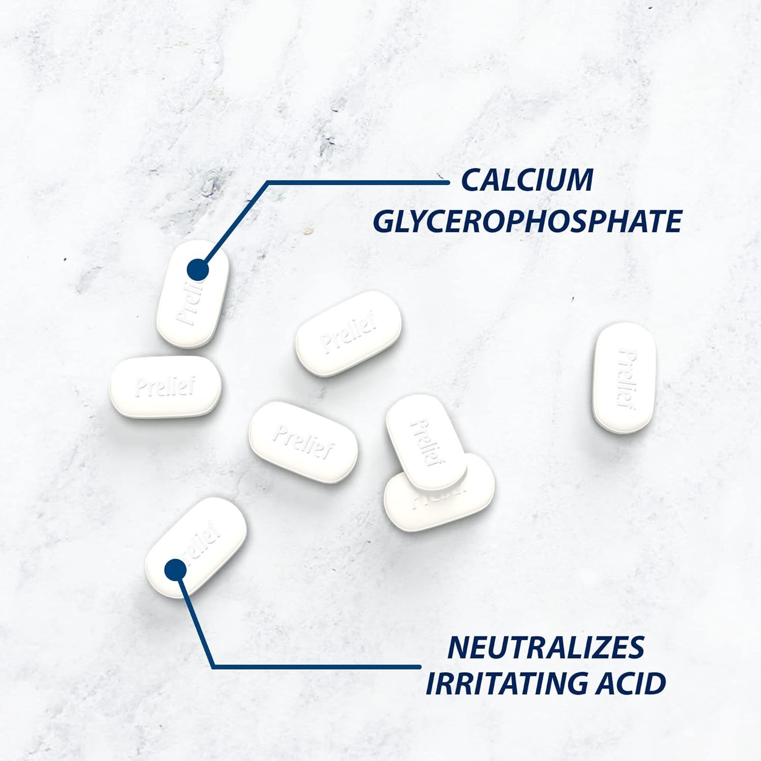 Are you no longer able to enjoy some of your favorite foods? Do coffee, wine, pizza, tomato sauce, or chocolate cause discomfort after eating? These foods are highly acidic and may cause heartburn and bladder symptoms associated with acid reflux such as bladder pain, a burning sensation while urinating, or the feeling that you need to urinate more often than normal. Prelief is a drug-free acid reducer that contains calcium glycerophosphate. It works by neutralizing the acid levels in the food you eat, so be sure to take Prelief before you enjoy your favorite acidic foods. You can take Prelief as often as you think you will need it. Simply take Prelief whenever you start to eat an acidic food that might make you feel uncomfortable. Begin by taking two tablets before a meal or snack that includes foods that could cause bladder discomfort or heartburn symptoms. You can take additional tablets over the course of the meal if necessary. You may find you need or more or less depending on the amount of food and your sensitivity. Prelief is drug-free so you can take it in the morning, noon, or night. Prelief is a good source of calcium; two tablets contain 15% of your recommended daily value of calcium. Developed by the makers of Beano and Lactaid, Prelief has a 20-year history of helping acid sensitive people eat the foods they love. Take Prelief before eating and avoid the bladder discomfort and heartburn symptoms that can be caused by highly acidic foods.
