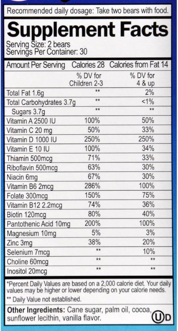 Yum V's Multi-v Plus Multi-mineral Formula Milk Chocolate - 60 Bears