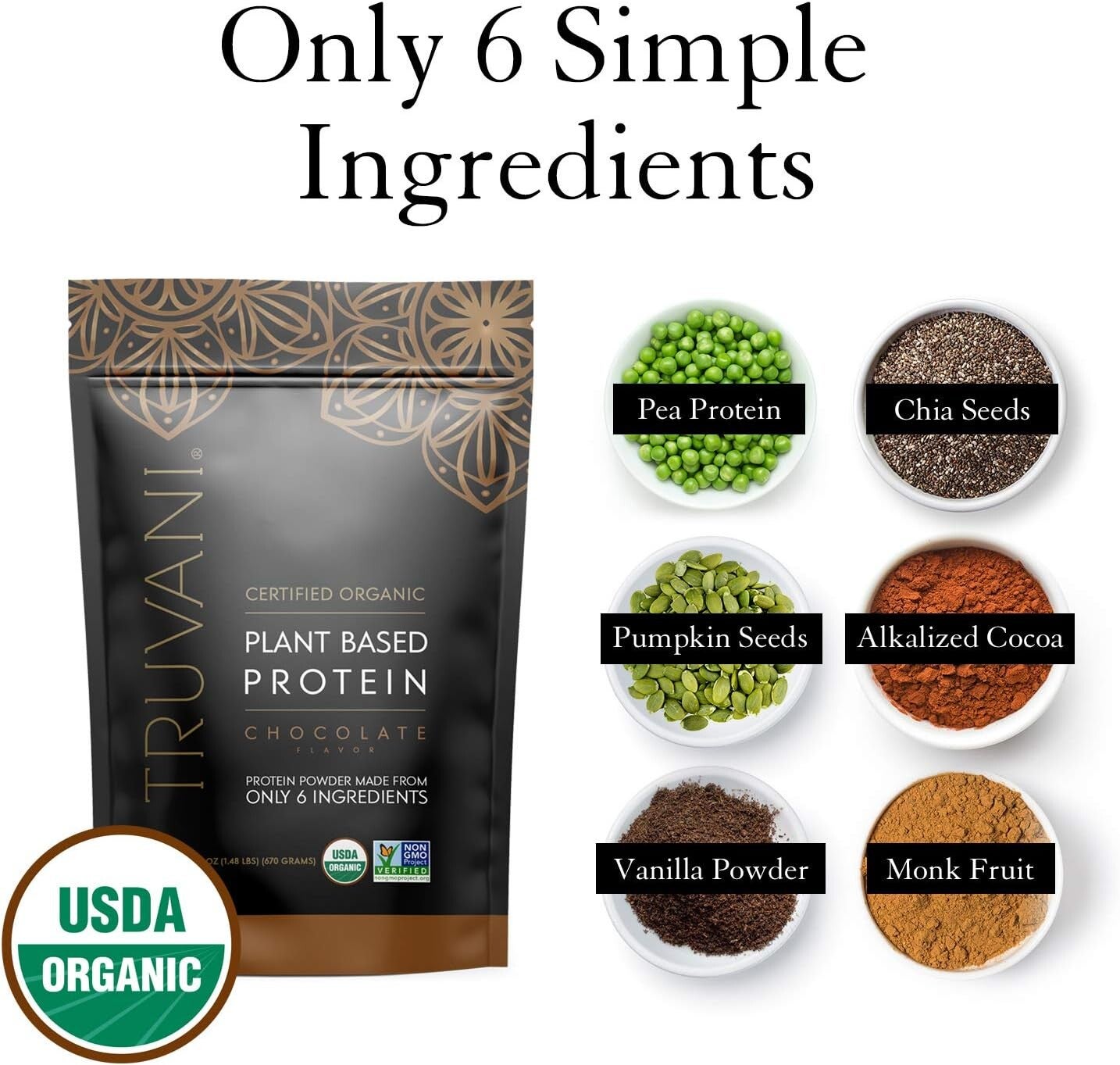 Certified USDA Organic: Trust in the integrity of our plant-based vegan protein powder, certified USDA Organic, non-GMO, and vegan-friendly. Our straightforward label and simple ingredients ensure transparency and quality. Protein sourced from all organic pea, pumpkin seed, and chia seed.