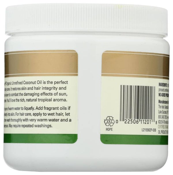100% Mechanically (Expeller) Pressed Unrefined Organic Coconut Oil.