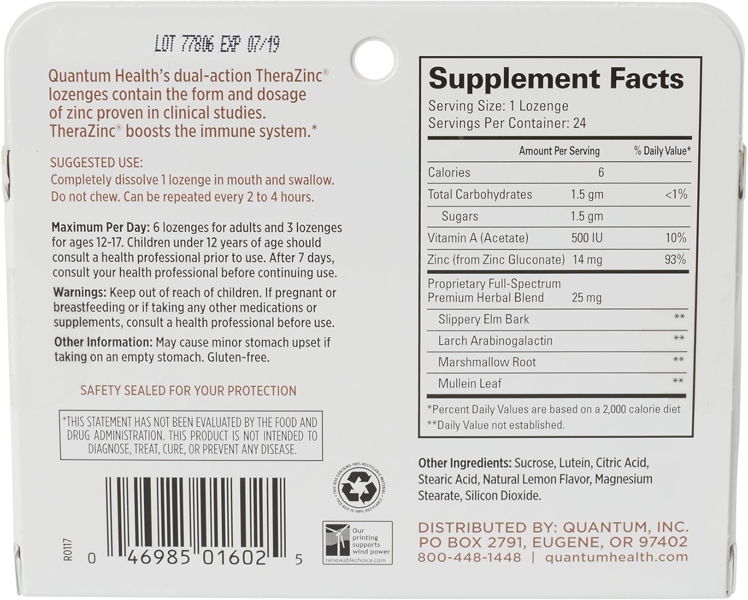 TheraZinc Lozenges are a refreshing and soothing way to meet immune challenges. You also benefit from a proprietary blend of throat comfort herbals including slippery elm and mullein leaf.