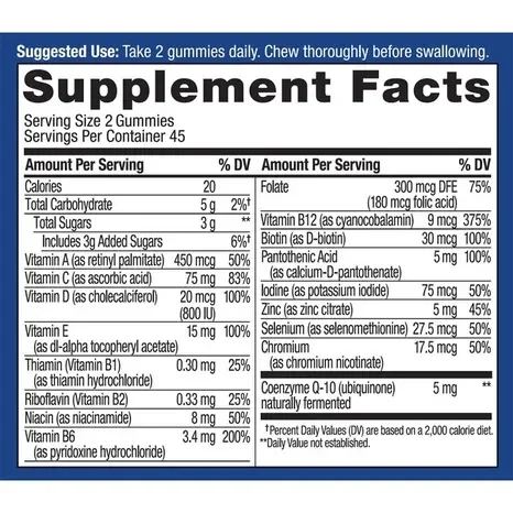 THE GOODS INSIDE: Chewable daily vitamins include the nutrients your body needs. B vitamins support your body's cellular energy production to power your day. Antioxidants like Vitamins A, C, and E help fight free radicals and promote a healthy heart