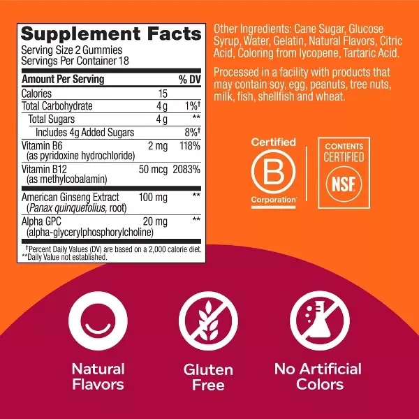 Laser Focus gummies are formulated with Ginseng Extract, a hard-working botanical that helps you get in the zone and stay on task. Alpha GPC is a choline compound, and B vitamins support your healthy brain function.*