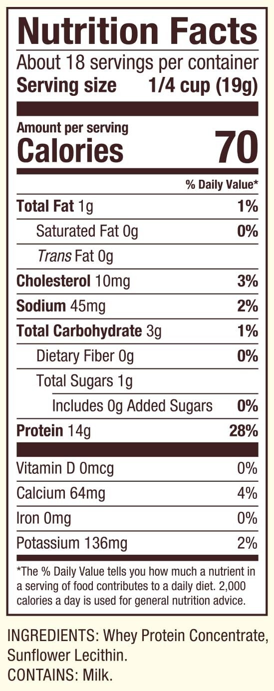 For a quick and easy Protein Shake, add 1/4 cup whey protein powder to a glass of juice or milk. Stir and enjoy. To make a delicious Smoothie, blend 1/4 cup whey protein powder, 1 cup fruit, 1/2 cup milk or water, sweetener if desired, and a handful of ice (about 1/2 cup). Makes about 2 cups.