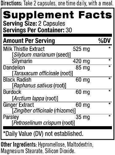 Milk Thistle Extract, Dandelion, Black Radish, Burdock, Ginger Extract, Parsley, Hypromellose, Water, Magnesium Stearate, Silica, Maltodextrin.
