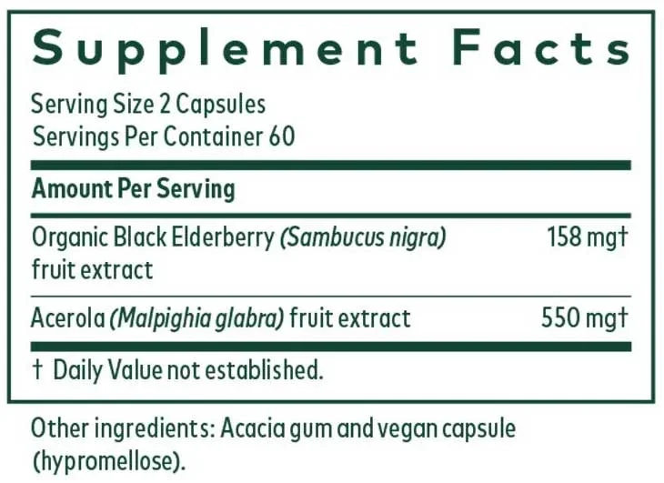 Potent Antioxidant Blend: Combines Black Elderberries with Acerola fruit for enhanced antioxidant protection.